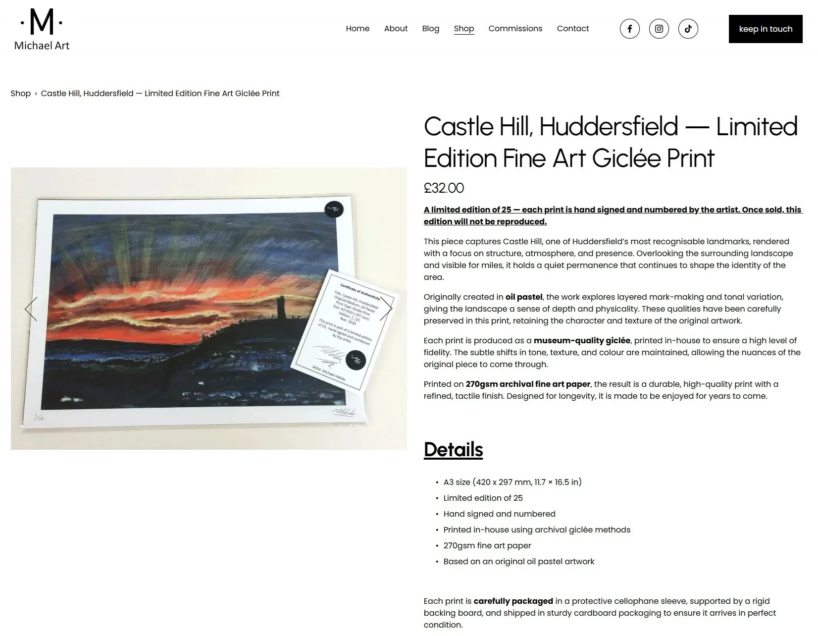One thing that felt particularly important throughout this process was the quality of the print itself. I wanted it to reflect the same care and attention as the original work — from the archival giclée printing to the weight and texture of the paper. Each print is produced in-house, then hand signed, numbered, and packaged carefully before being sent out. It’s not just about reproducing an image, but about creating something that feels considered and lasting.